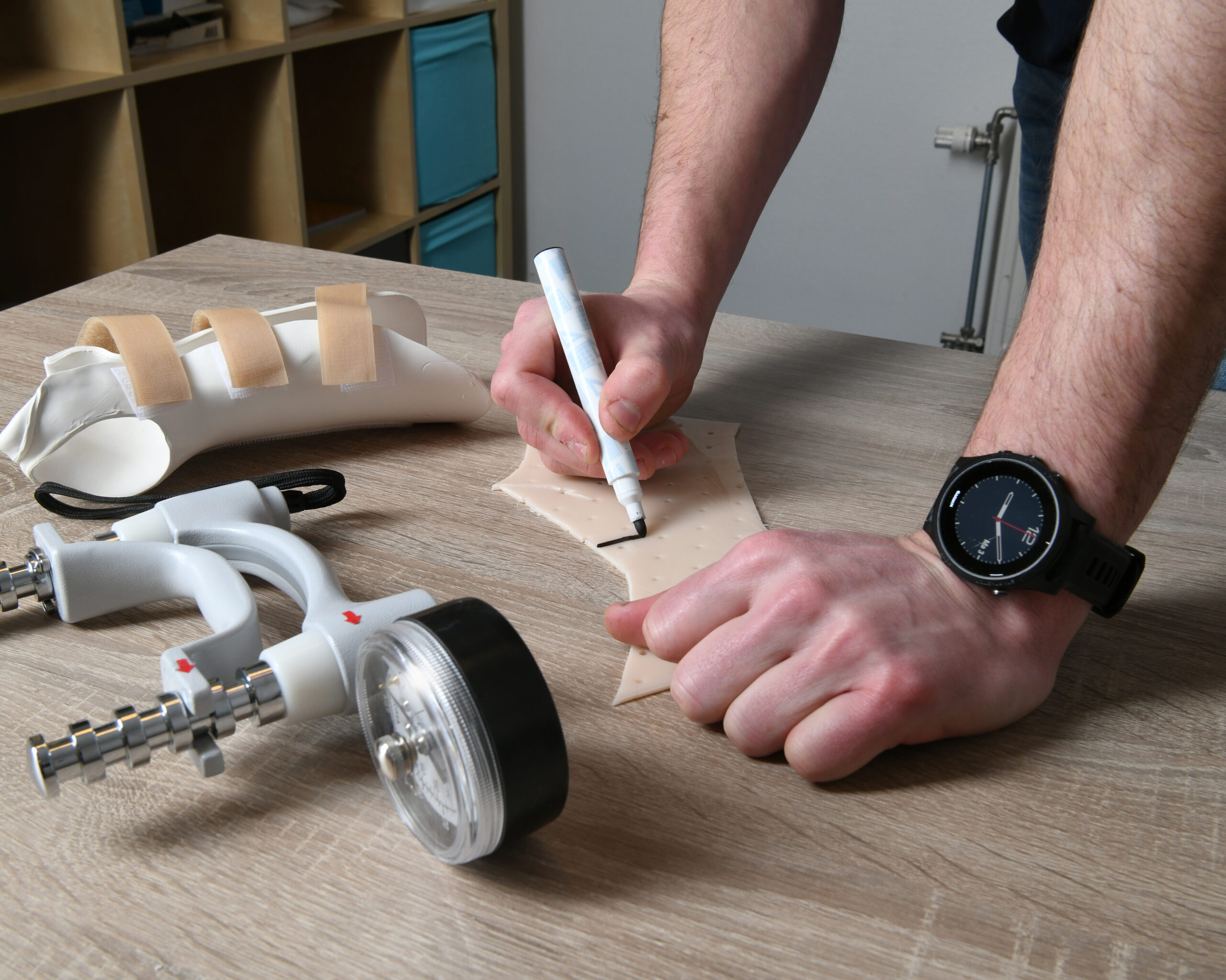 In de behandeling kan worden gekozen om braces in te zetten. De therapeut maakt deze zelf.